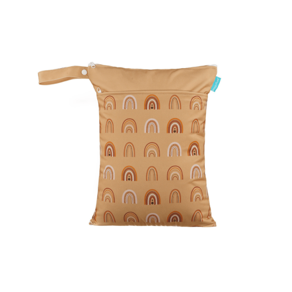 Stylish, waterproof, and reusable – our Happy Flute wet bags are perfect for storing used nappies, swimsuits, or messy clothes while out and about. Zipper closure keeps smells contained. Machine washable.